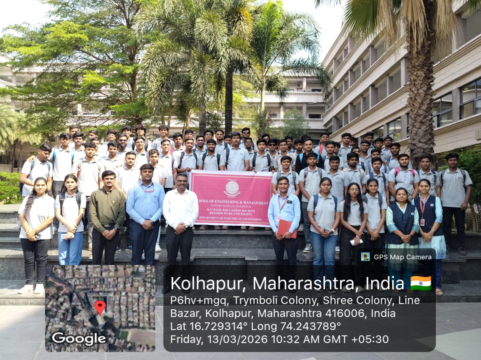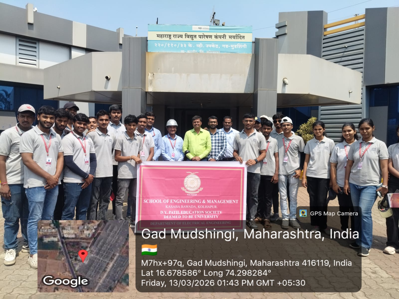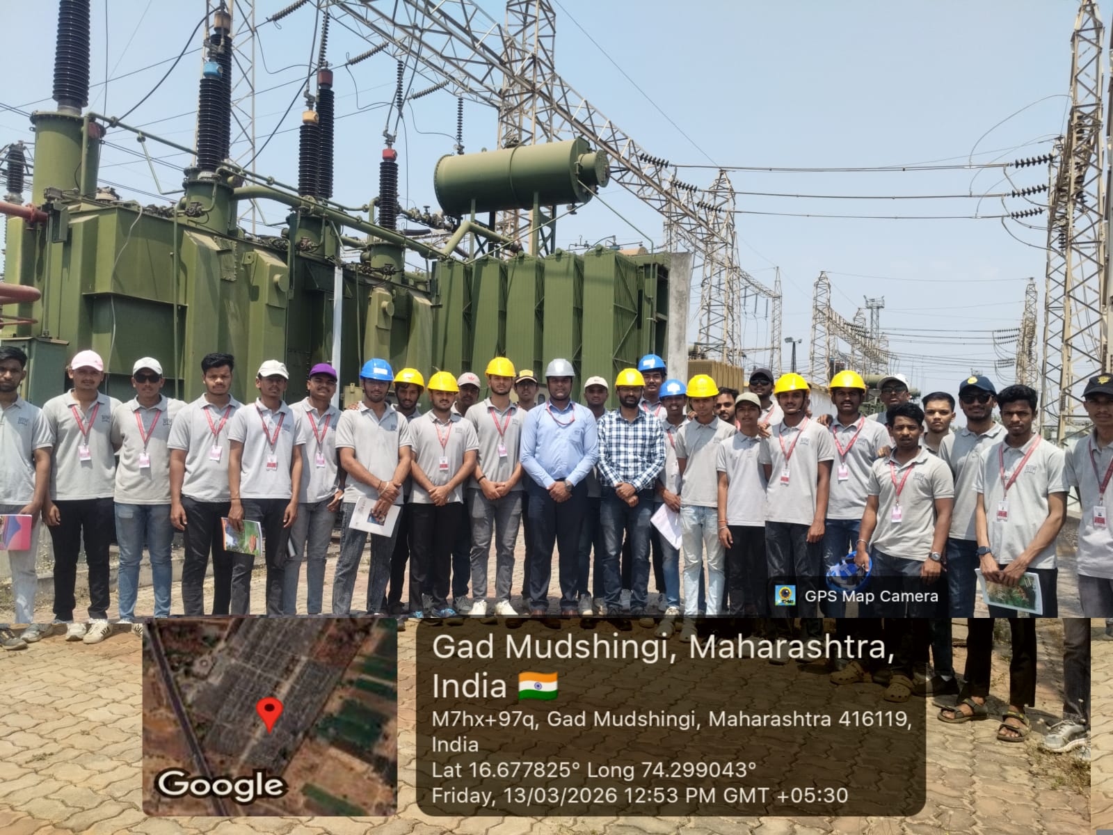 The Department of Electrical Engineering (DYPSEM) organized an industrial visit to the 220 kV Mudshingi Substation on 13 March 2026 for Second Year students, with 65 students participating.